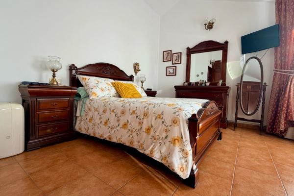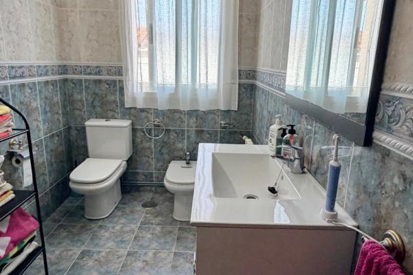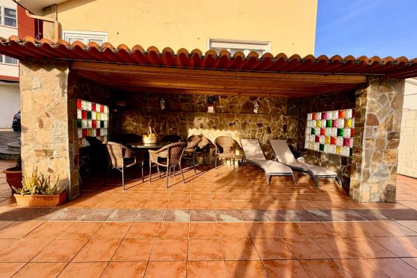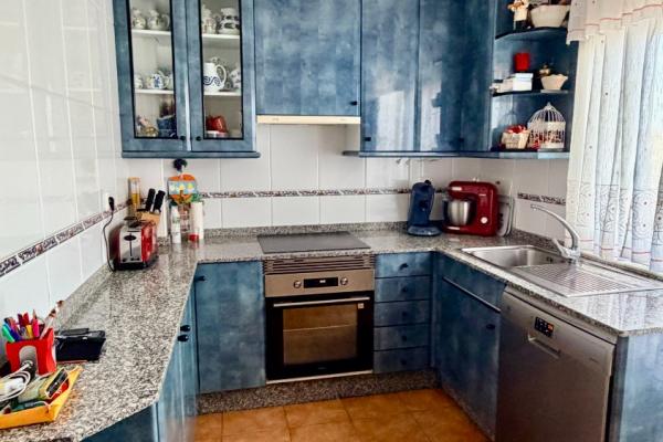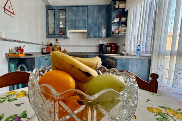 -Planta baja de 149m2, según catastro, con recibidor, dos habitaciones con sus armarios empotrados, salón comedor con chimenea de madera, baño completo con plato de ducha, y cocina amueblada con salida al patio trasero.